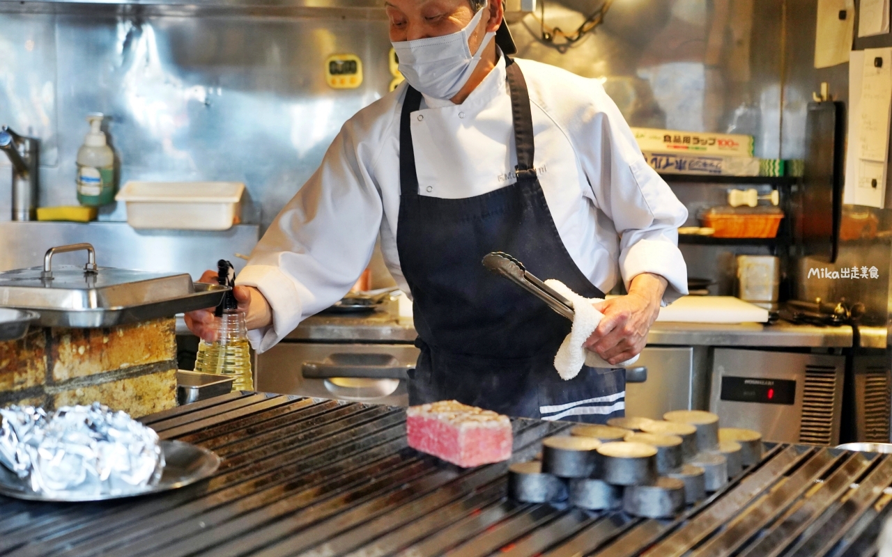 一進店裡就看到廚師正在直火炭烤磚塊和牛牛排,看傻!