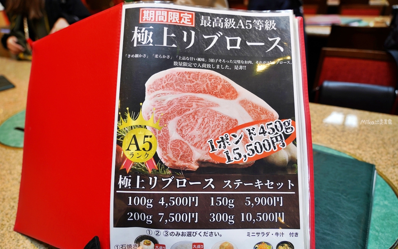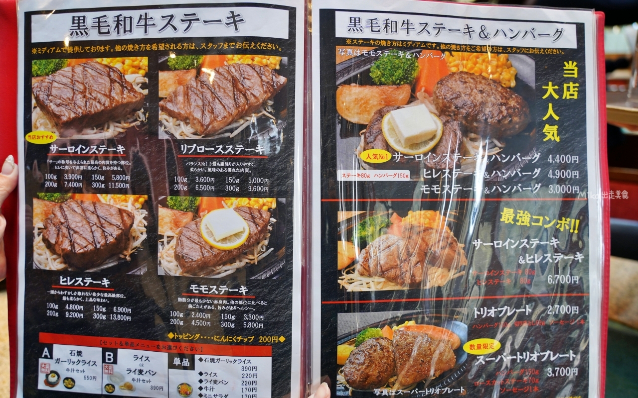 一共有四種和牛牛排,要價13000日幣,高達400g。
