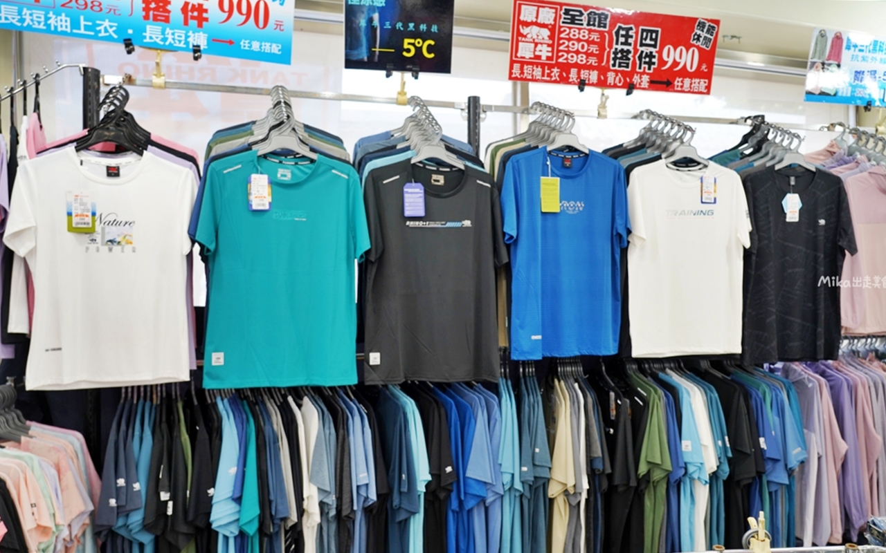 不管是長短袖、長短褲、還有抗UV外套,或者是超大尺碼都一樣可任選搭配。