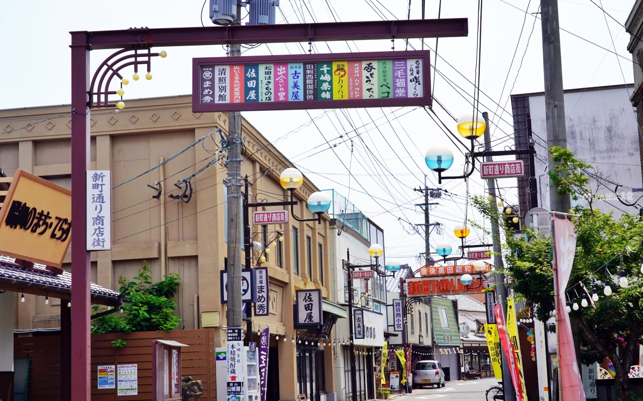 九州唯一最具昭和時代風情的懷舊商店街,550公尺長,包括中央通、新町一、二街的町區,街道上充滿復古風味招牌、建築物、商店,彷彿是一條長長的時光隧道,不但假日有懷舊復古巴士行駛,就連昭和時期學生的營養餐也吃得到,裡面竟然有鯨魚肉!