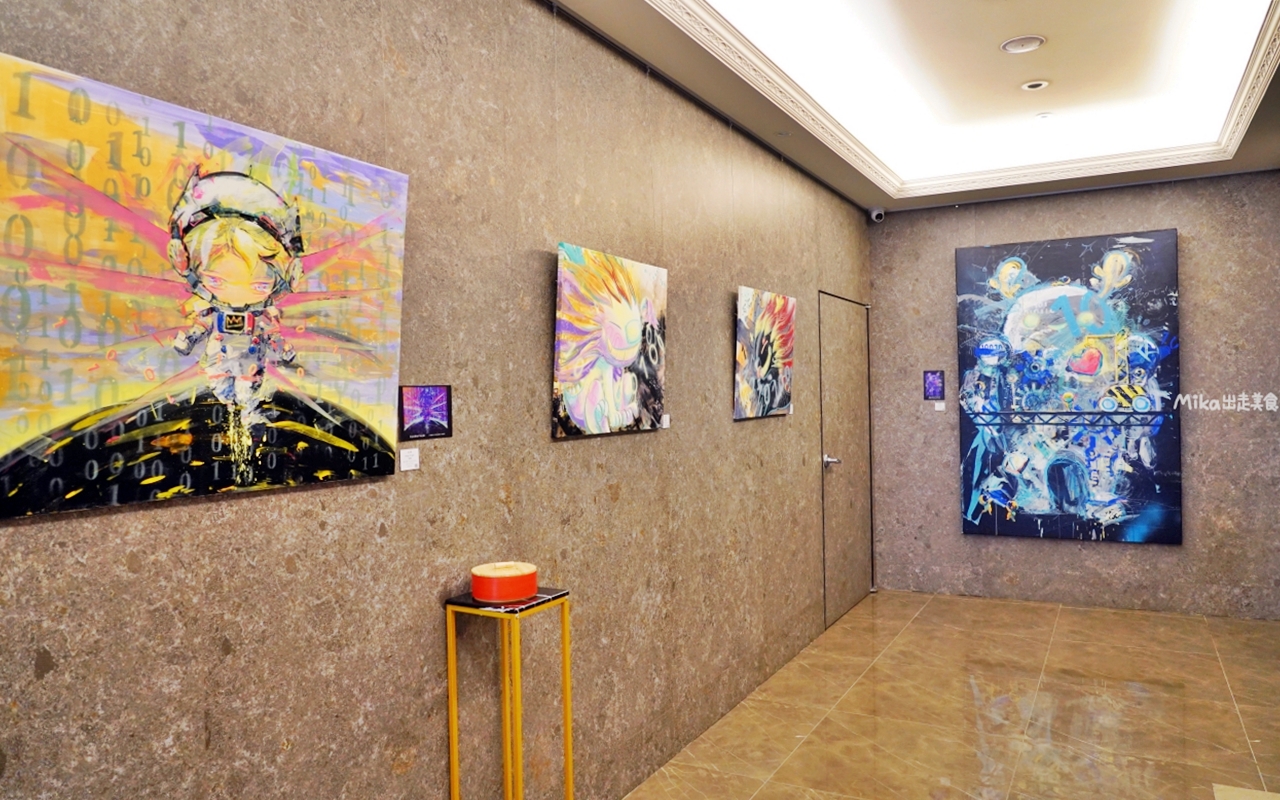 牆上與空間展示在地藝術家作品,不定期更換展品。