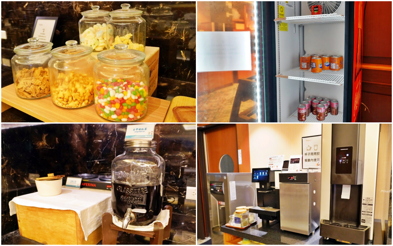 提供點心、咖啡、冰紅茶自取,供應到晚上22:30分。