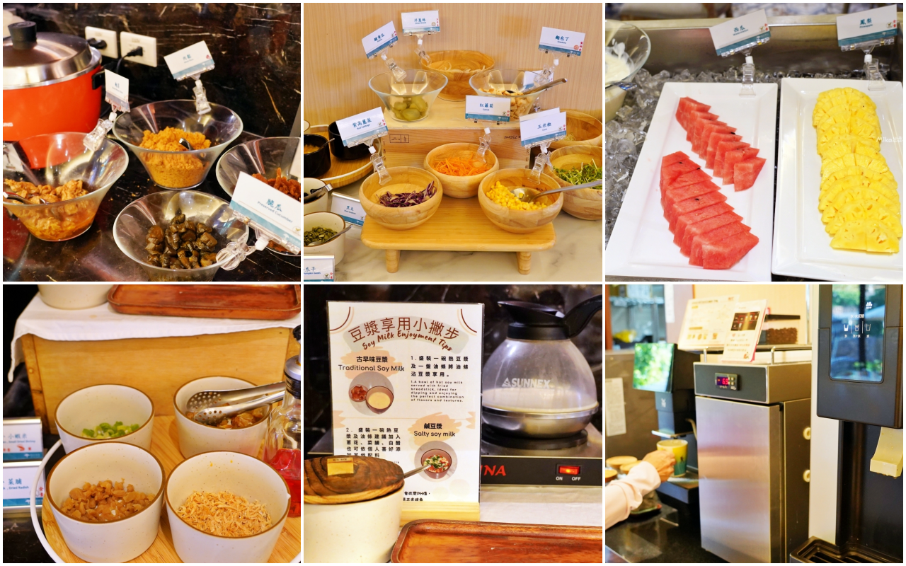 清粥小菜、水果、沙拉、咖啡等…還有自製鹹豆漿好酷。