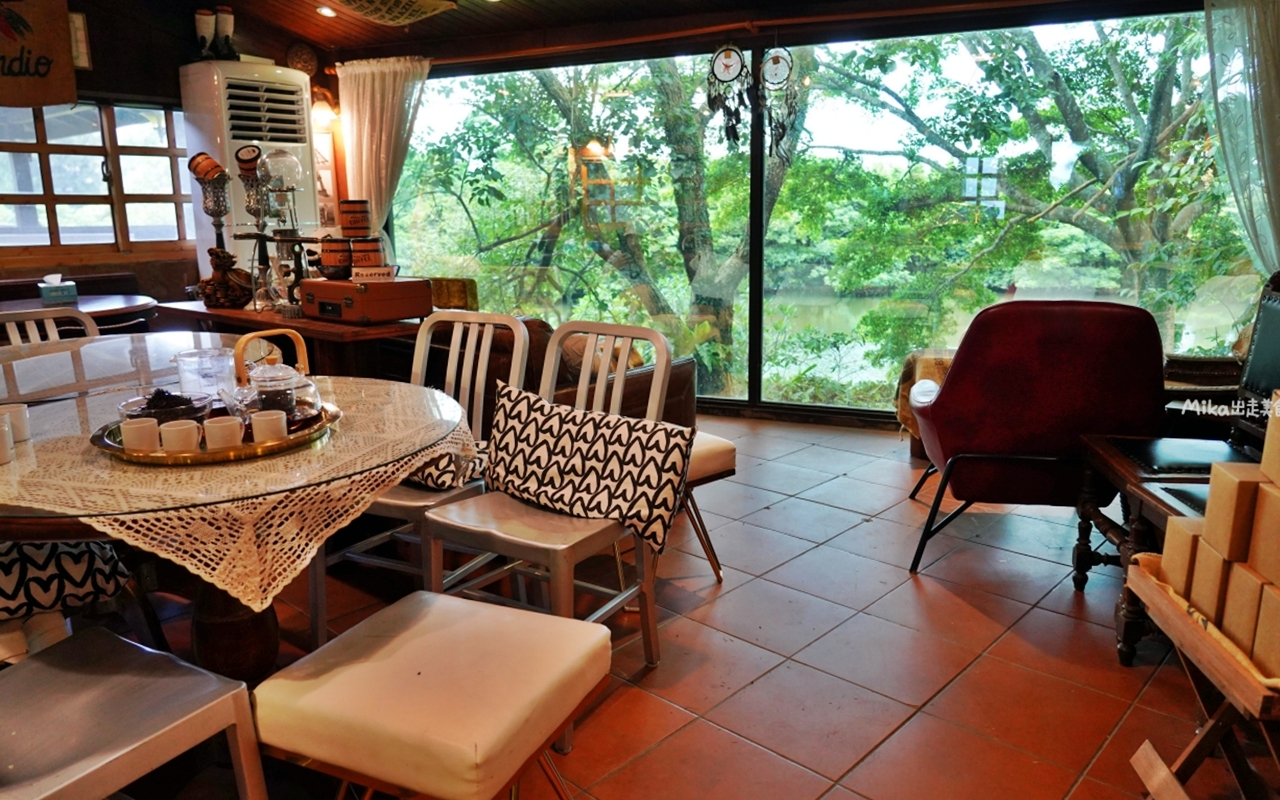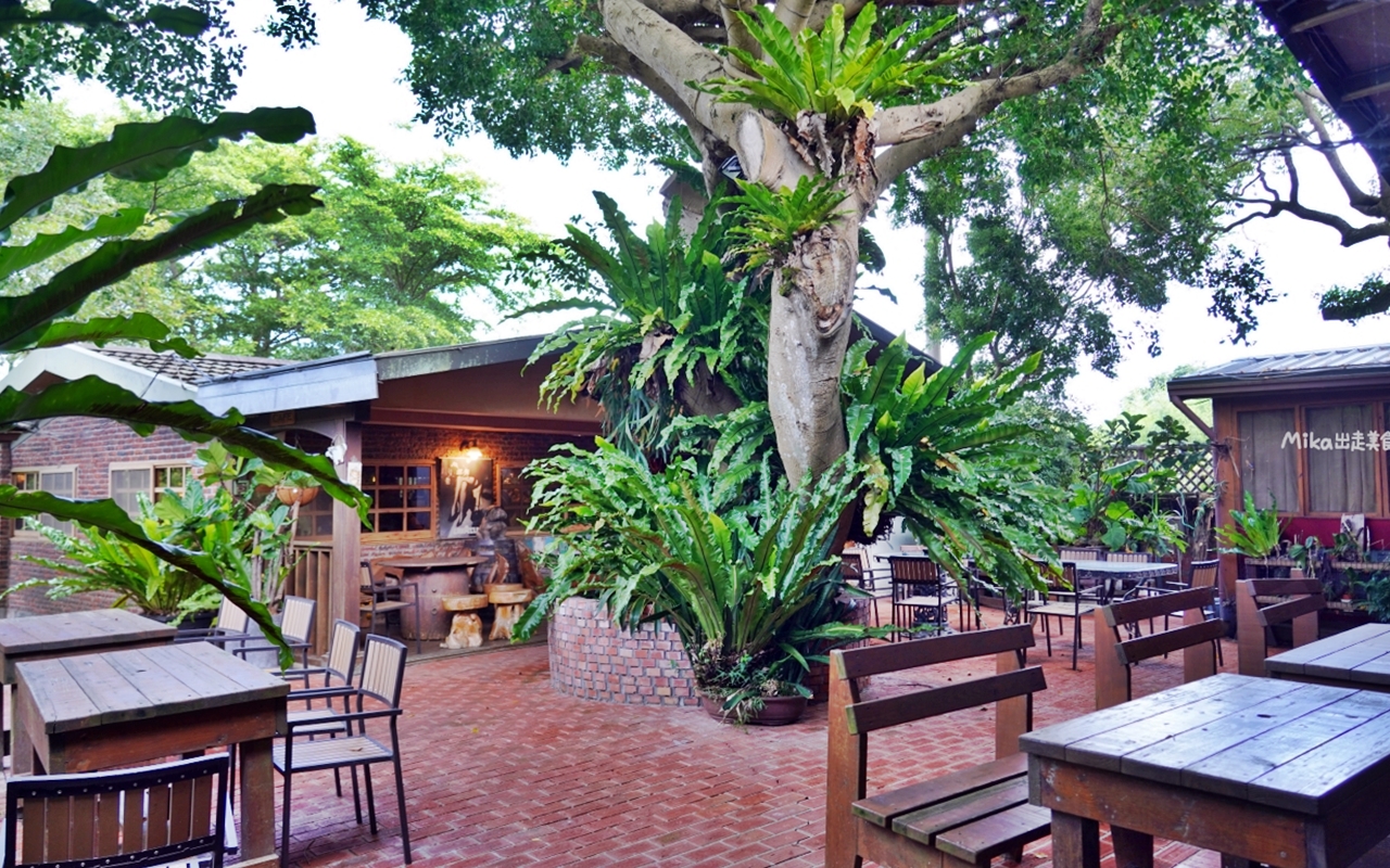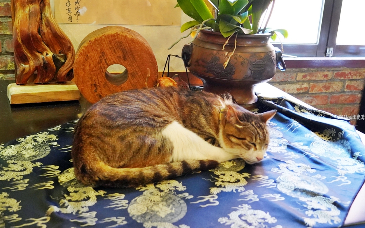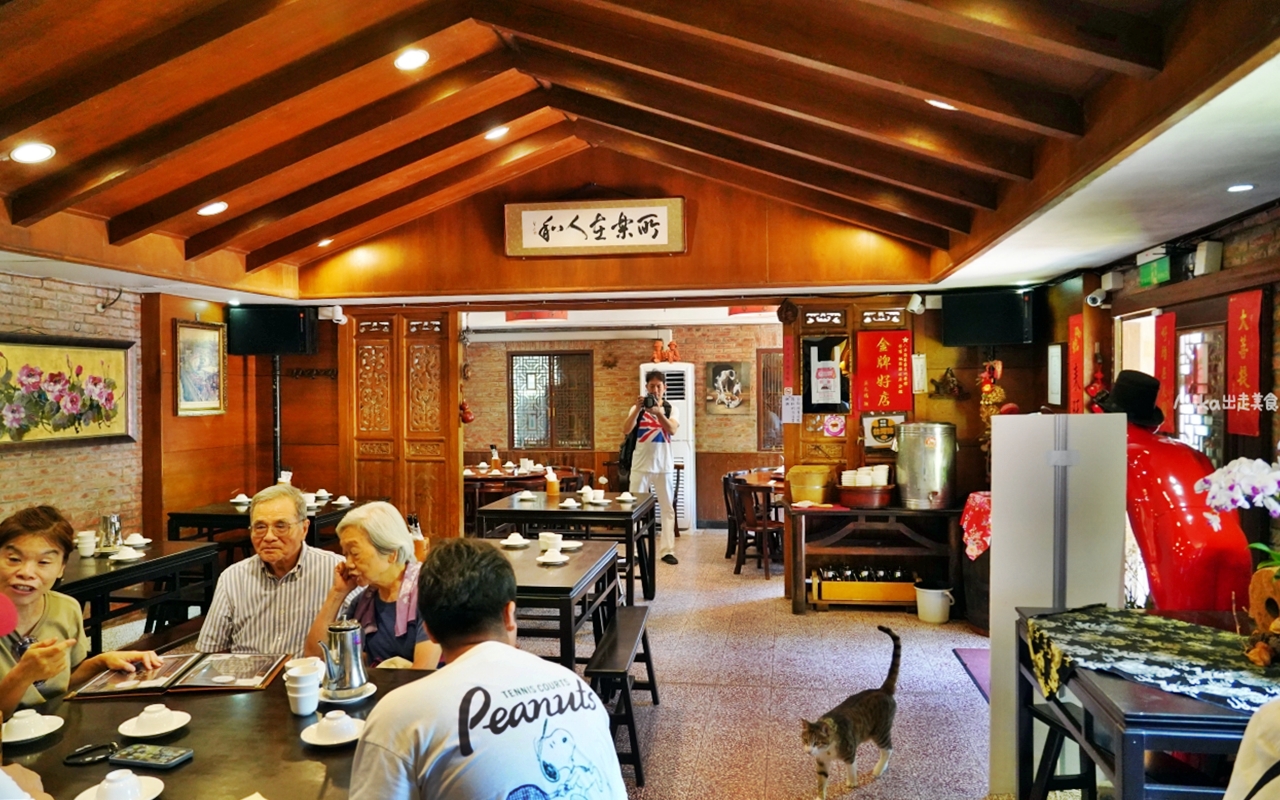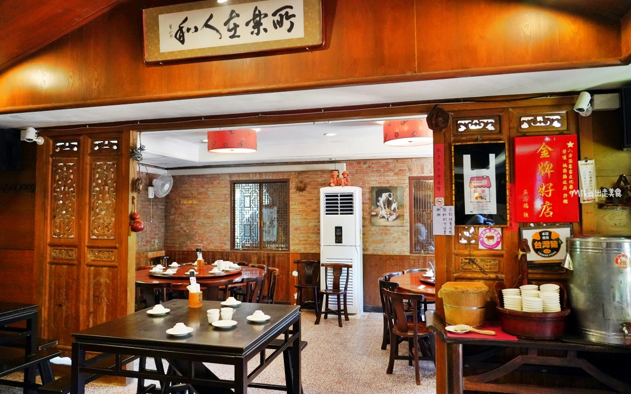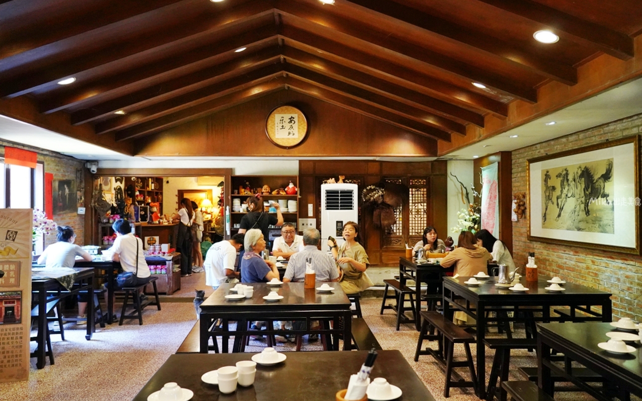 中式傳統風格,紅磚瓦牆、木製桌椅、客家花布,古色古香氛圍給好給滿。