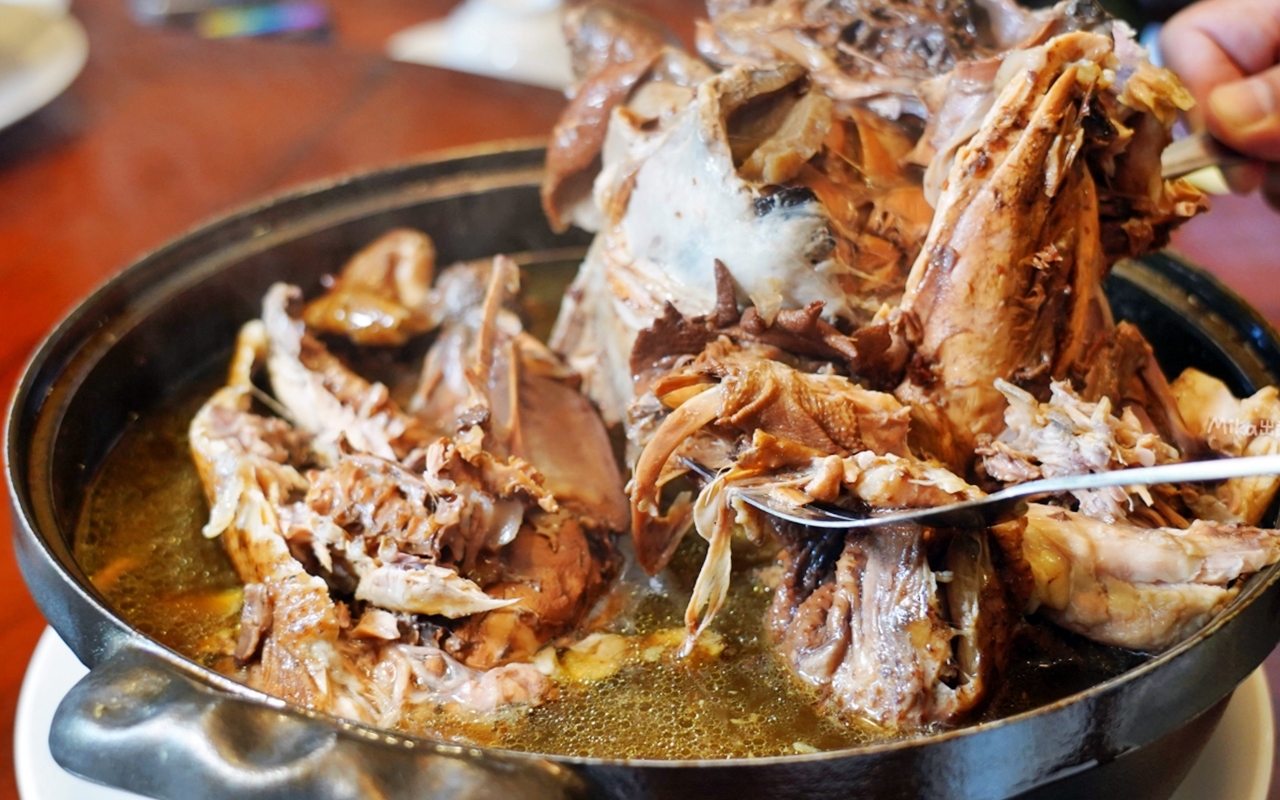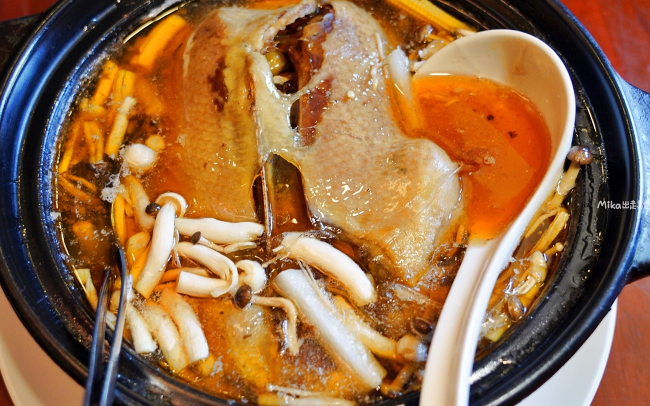 上次一吃傾心,必點的功夫菜來著,耗時費工,全鴨下鍋燉煮五小時,鴨子裡頭還塞了蓮子,底下有吸飽湯汁的寬冬粉再加上香菇等配料,肉質更是燉煮到輕輕一剝就骨肉分離,燉到骨頭都能吃的程度,真的每一滴雞湯都是精華啊。