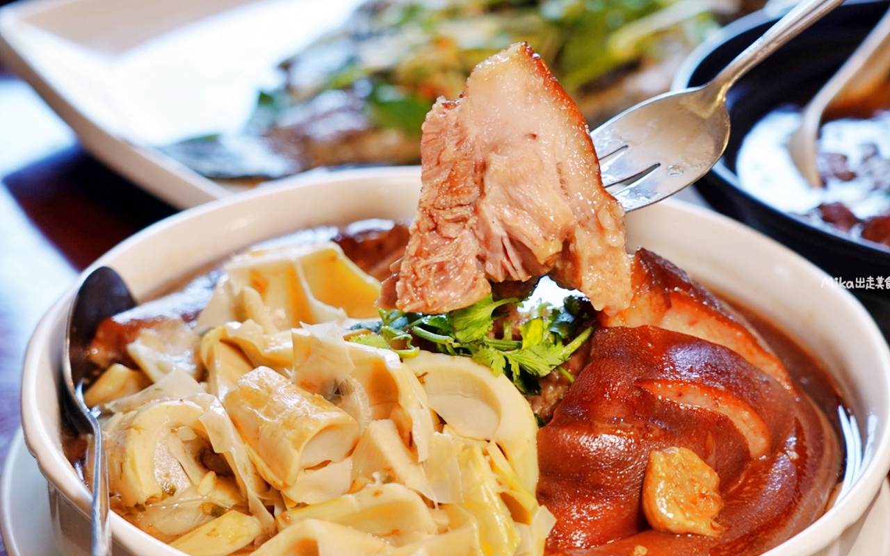 經典傳統客家菜來了來了!以往我家只有在過年圍爐時才會吃呢,滷得入味的蹄膀,軟Q鹹香滿滿膠質,搭配桂竹筍脆甜爽口才對味。