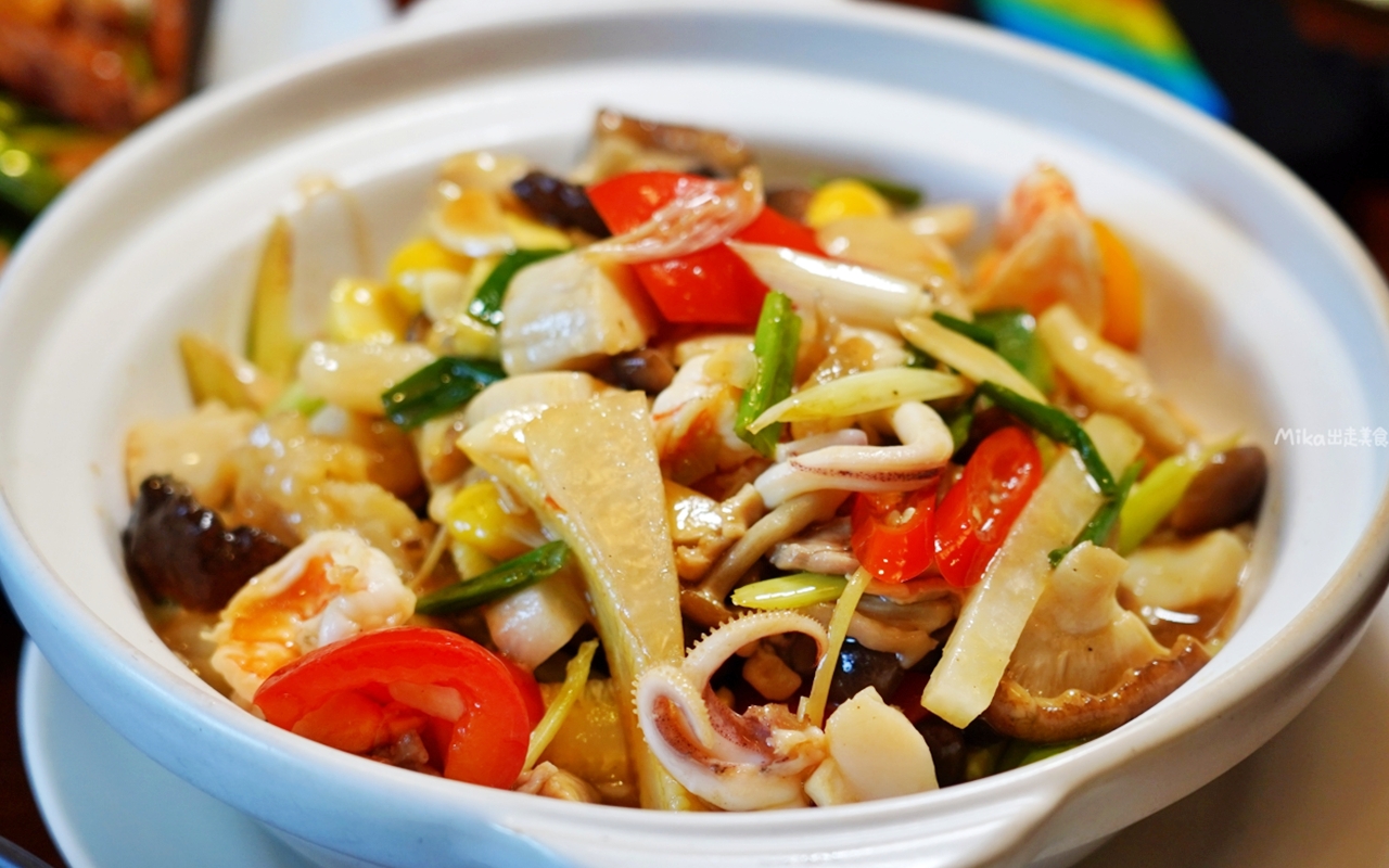 真的是八珍欸,裡面有蝦仁、干貝、海蔘、山藥、玉米筍、甜椒、雪白菇、魷魚,滿滿好料隨便你吃。