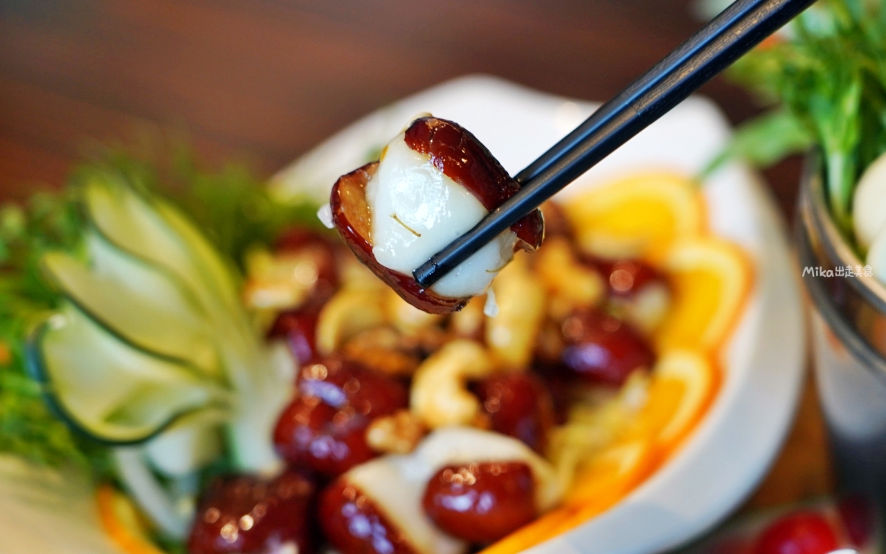 心太軟是用紅棗包麻糬,再用蜂蜜、桂花醬拌勻灑上堅果即可,就是一道很有賣相的中式小甜點,我是覺得很有創意,尤其裡面的麻糬跟堅果我很喜歡。