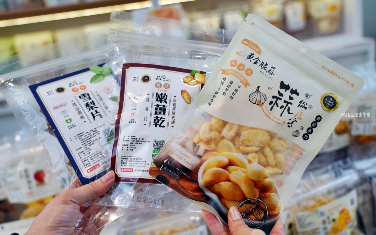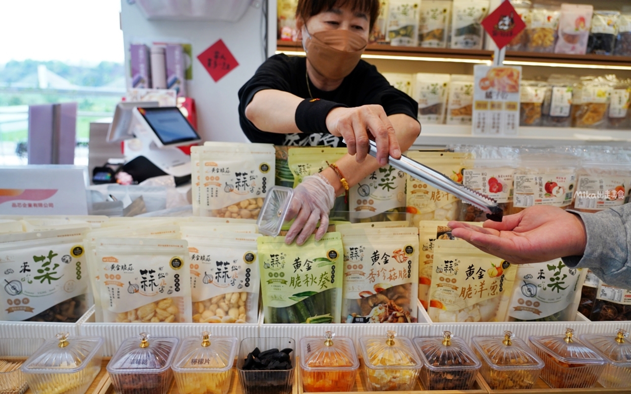 挑選雲林蒜頭、埔里香菇、將軍牛蒡、屏東洋蔥等優質食材做成蔬果脆片果乾。