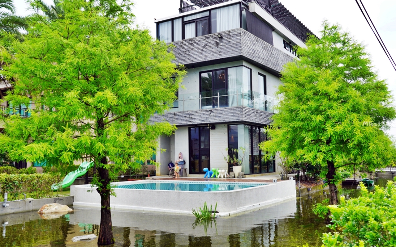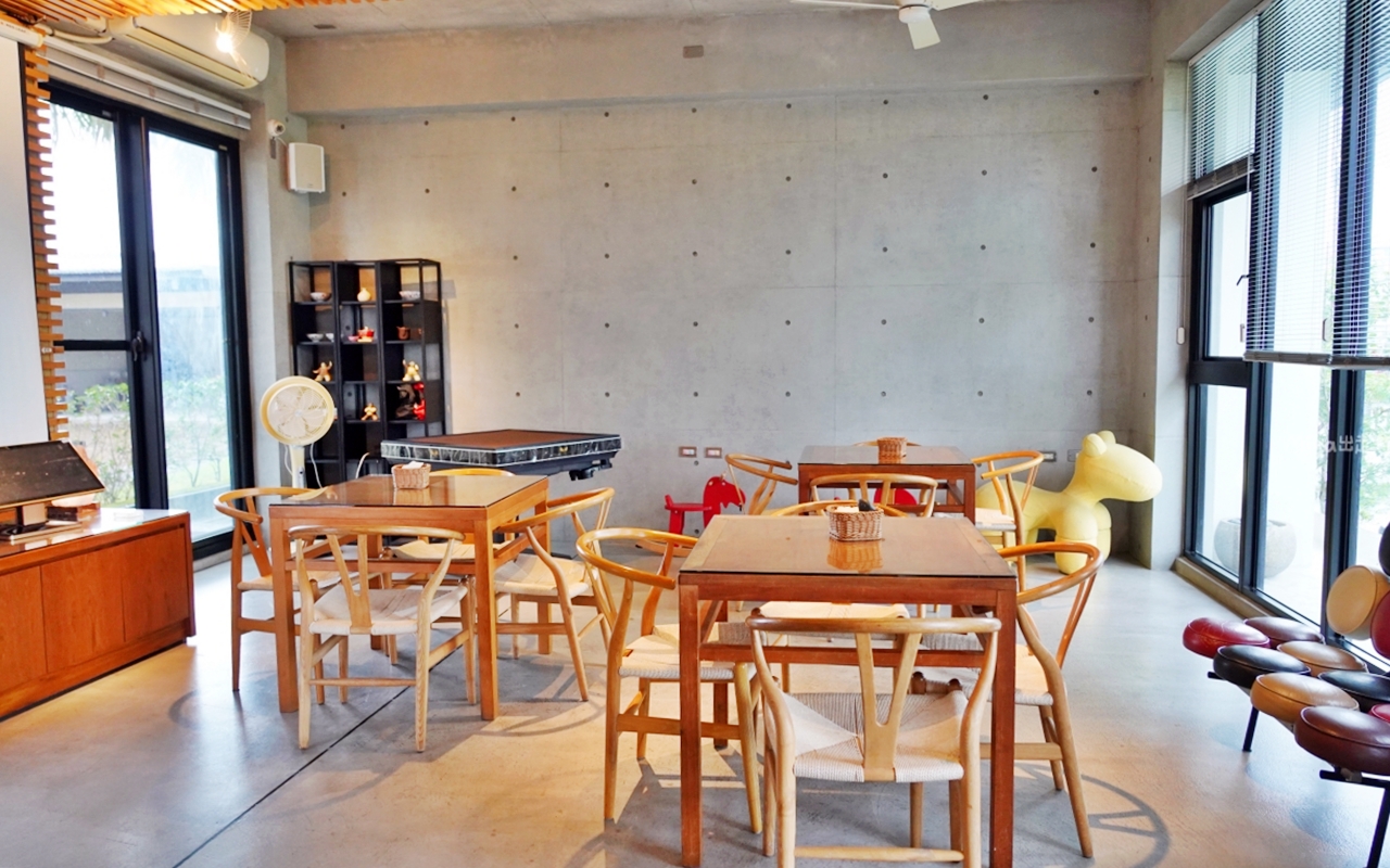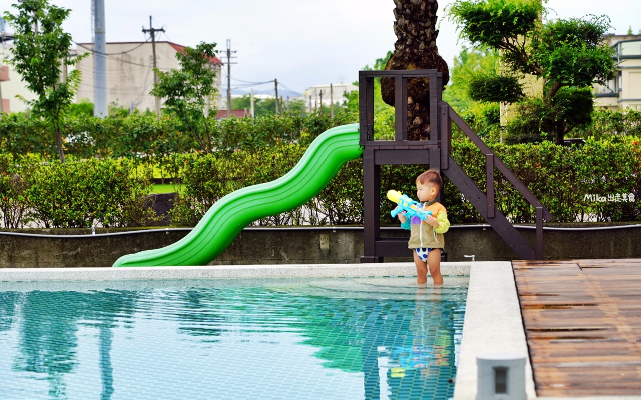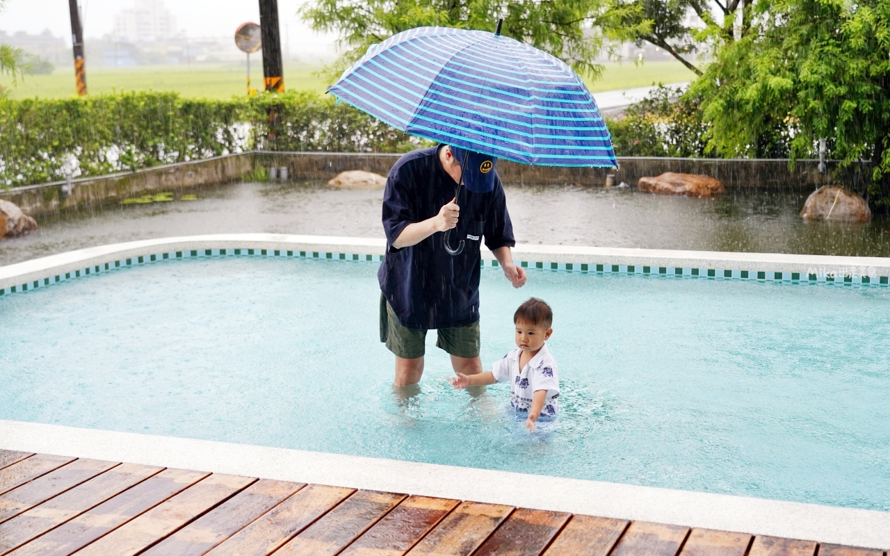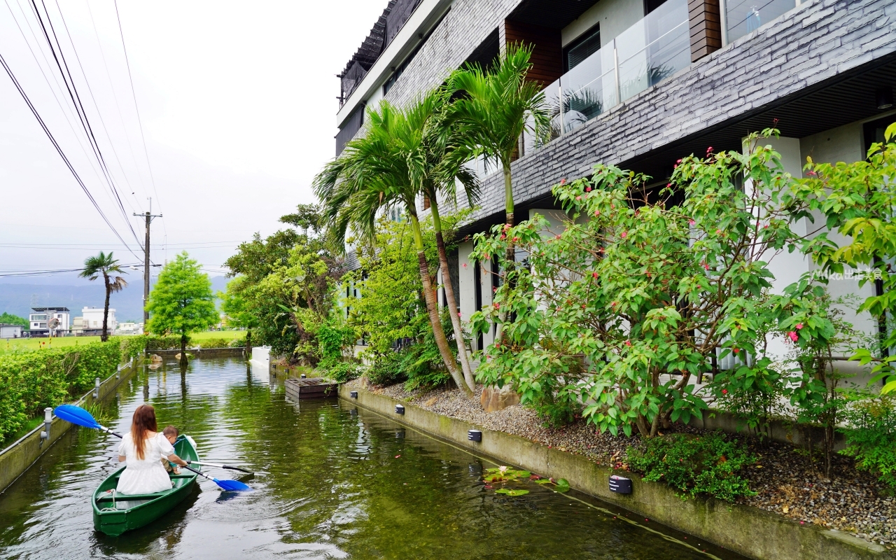 這次選擇這家獨棟清水模建築,位於田野間的民宿超酷的!不但被生態池環繞,還有戶外泳池,可以划船也可以讓小朋友游泳玩樂,大人晚上還可以打打麻將,畢竟是包棟,打到天亮也不怕吵到人。