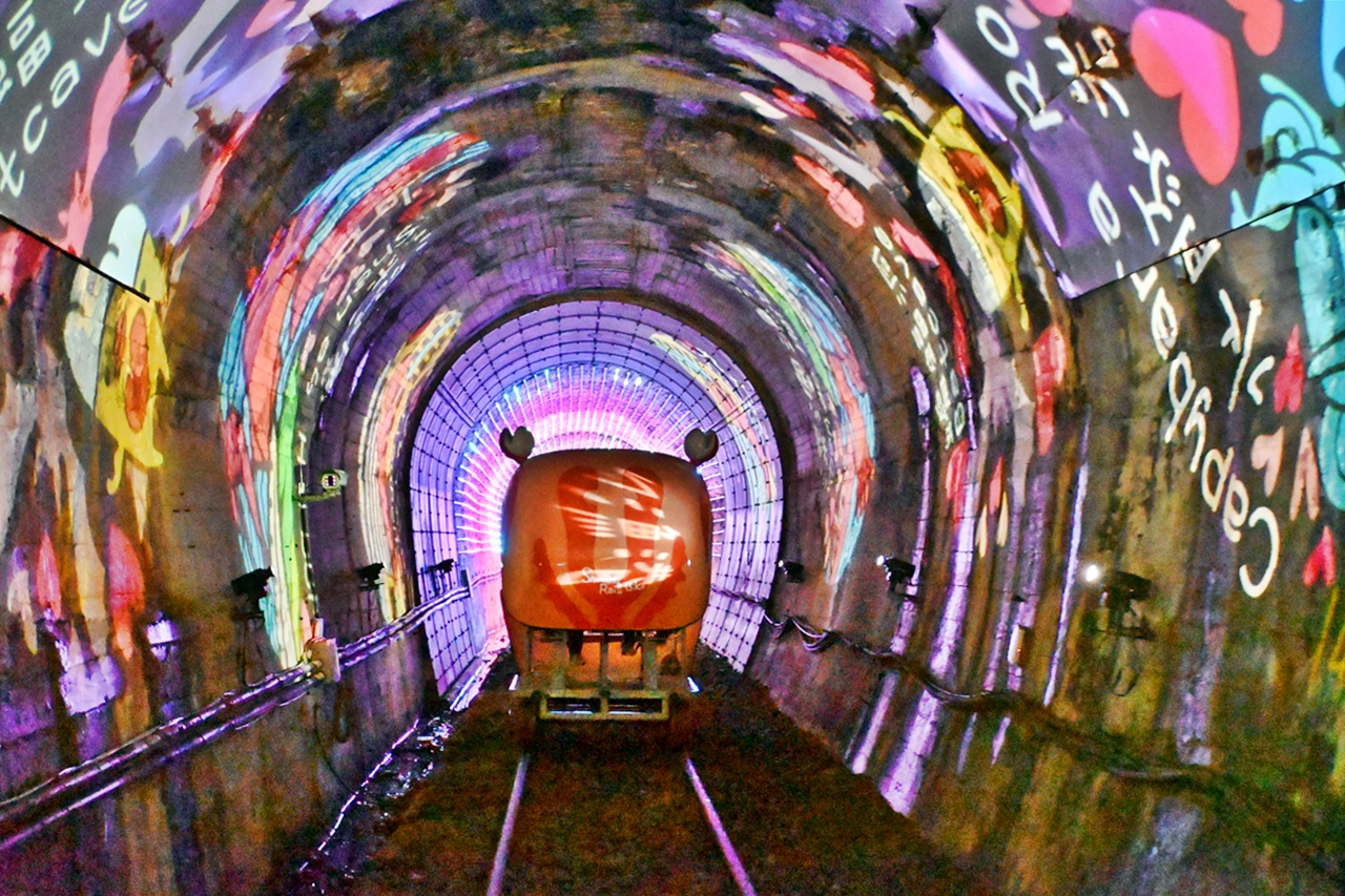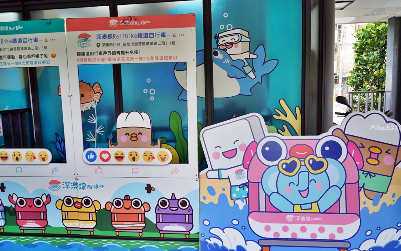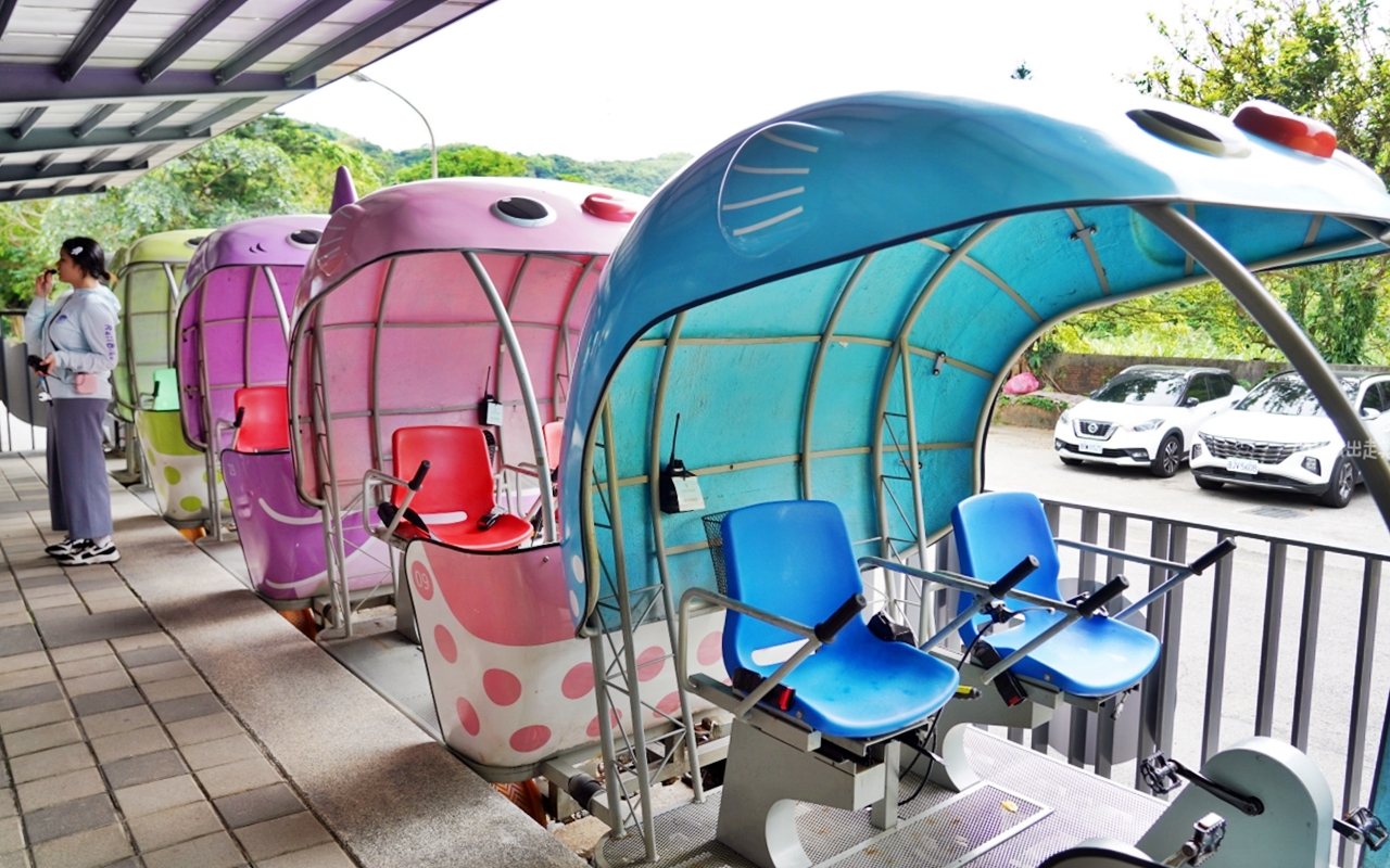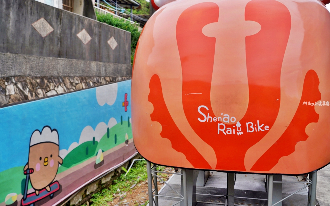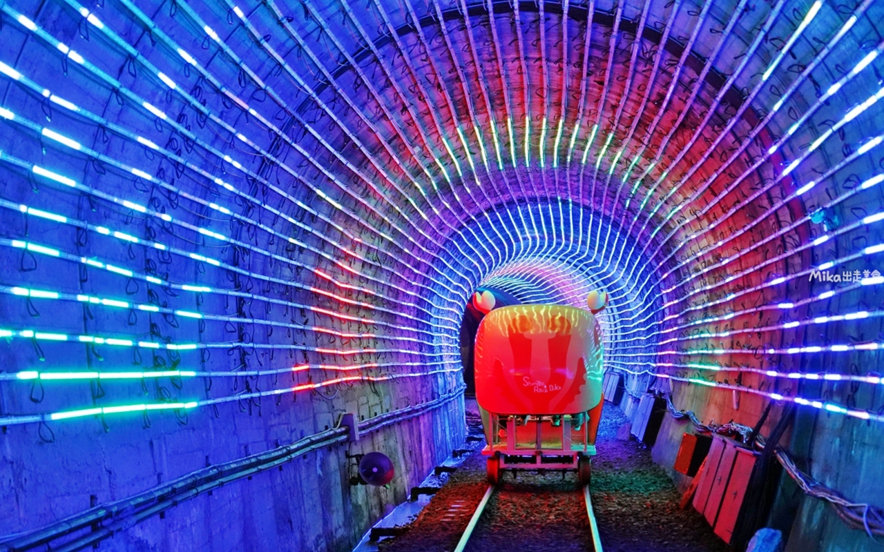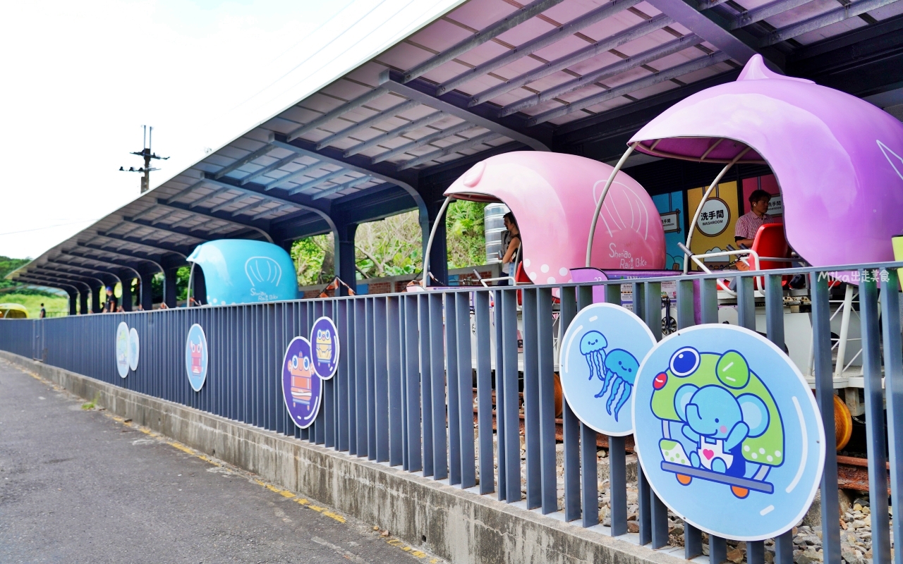來這裡可以踩踏著超萌的可愛海洋動物造型自行車,就這樣穿梭在山海之間,沿途有山有海,還有彩繪牆以及光雕隧道隨行。
