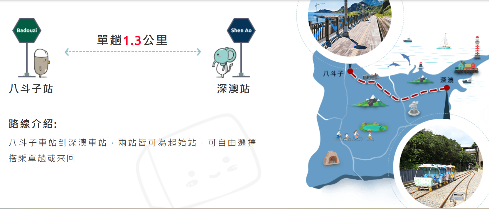 入選台灣百大亮點之一 的深澳鐵道自行車,是新北的打卡新地標也是親子景點,還是全台最美海岸鐵道自行車,位於深澳支線 – 八斗子站與深澳站之間,是離海最近,也是唯一橫跨兩縣市的車站。