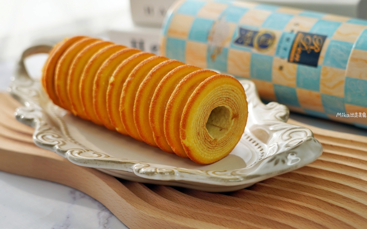 米年輪蛋糕其實吃起來有點像古早味蛋糕的香氣,只是吃起來比較扎實,不會太甜膩,我自己覺得很好吃,不知不覺會不小心嗑完整條的程度,很邪惡啊這棟西。