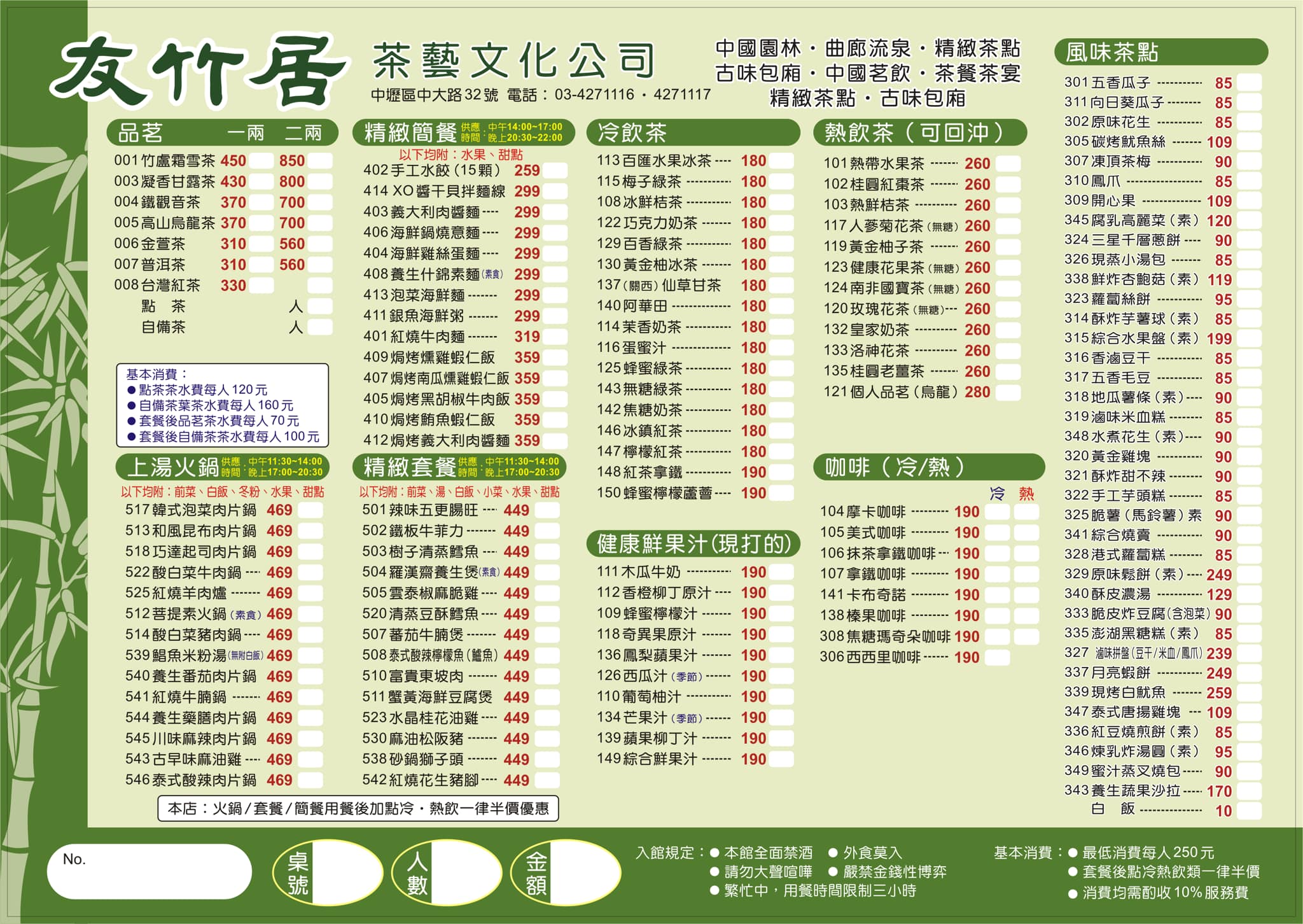 友竹居茶藝館|MENU