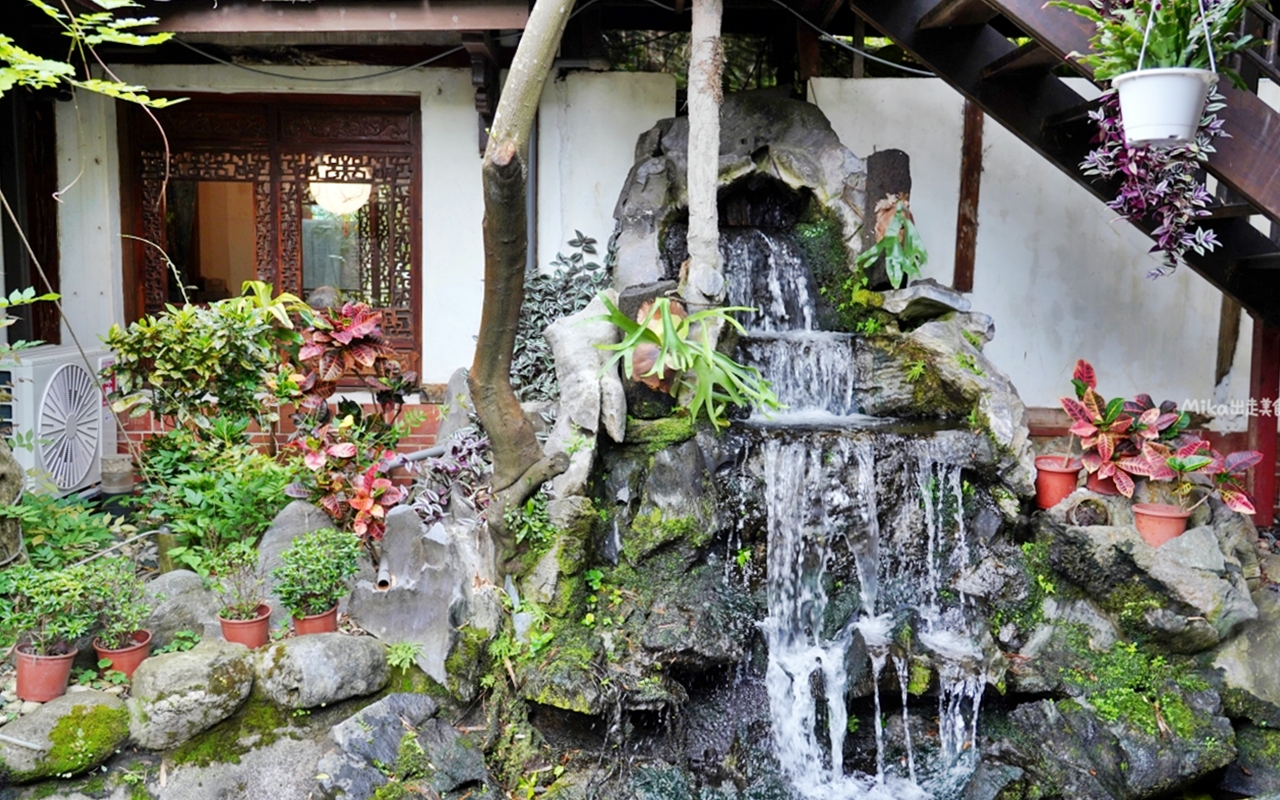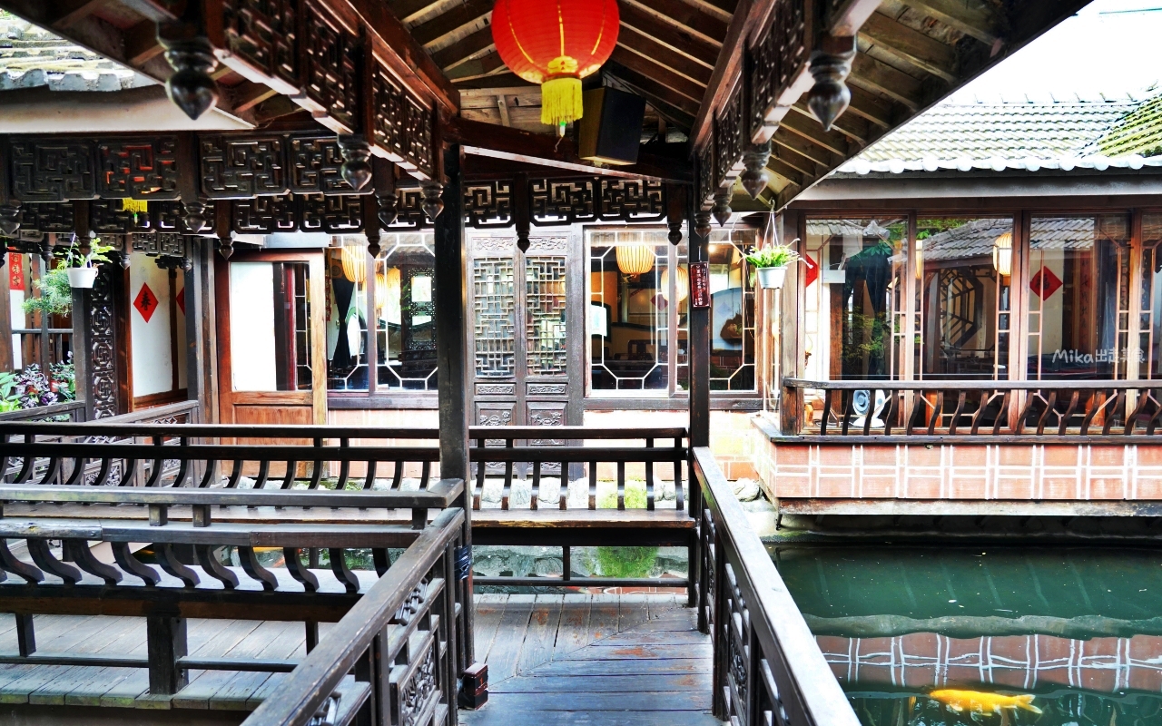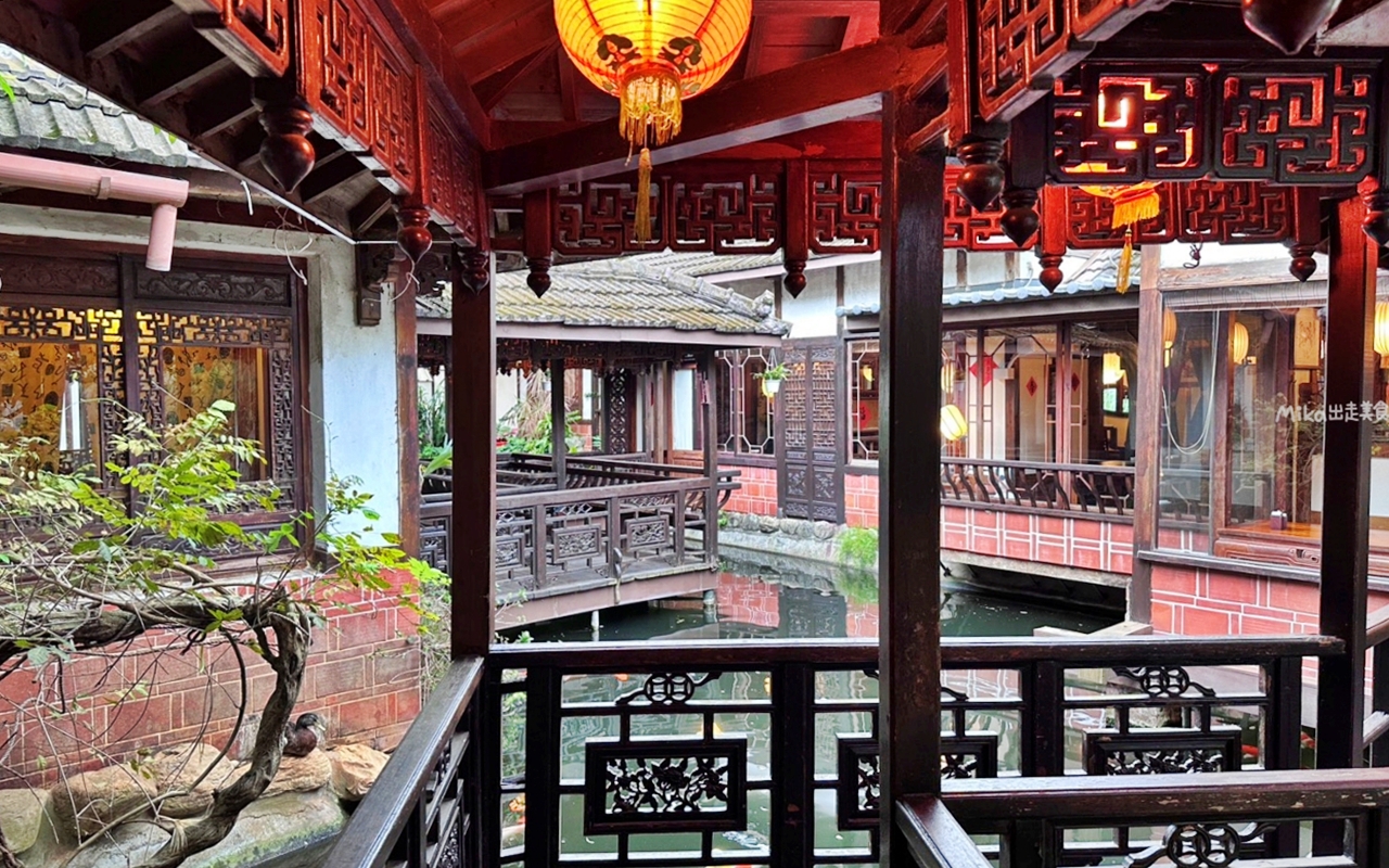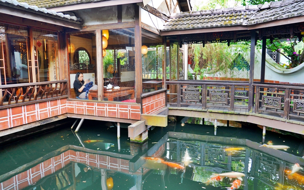 不過這家不但環境超美,古色古香,中式庭園造景,水榭樓台,迴廊旁還有小瀑布 流水潺潺,小朋友還可以來這裡餵魚,而且寵物友善 不限時還有停車場,餐點也很夠水準,以茶藝館來說,這家很推喔。