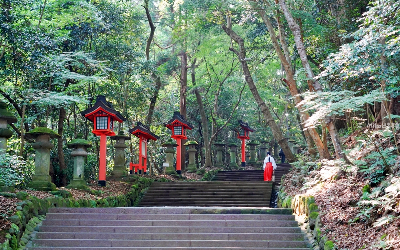 宇佐神宮也是需要走過一段很長的階梯,其中一個樓梯中間藏著一顆愛心形狀的卵石,位於其中一個燈籠下方,但我是沒看到,可能也沒太認真找。