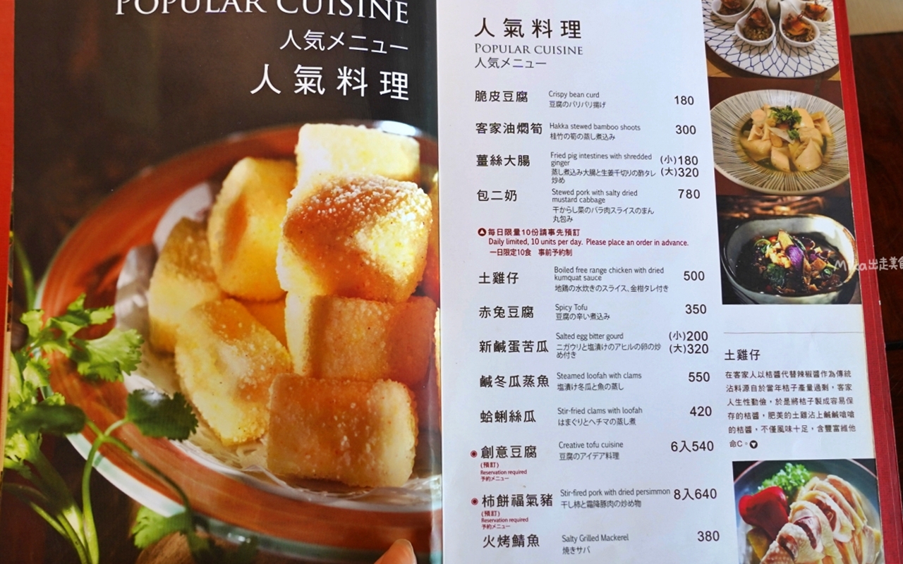 菜單部分包二奶、創意豆腐、柿餅福氣豬需事先預訂